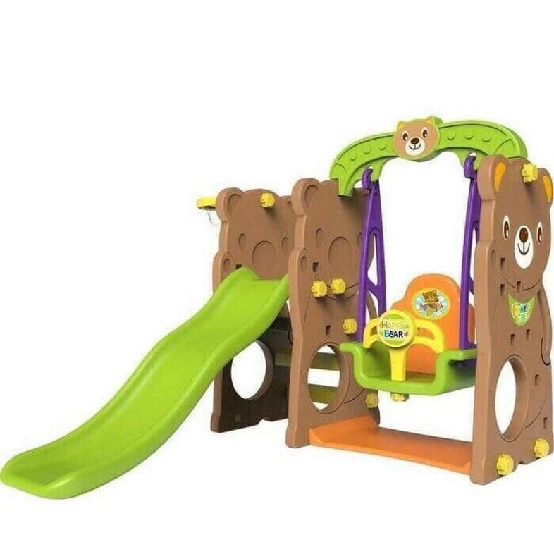 Bear slide with swing ini hadir dengan design beruang lucu dan warna tropis. Bahan yang tidak beracun aman untuk anak anak dan kokoh, tangga anti slip dan lebar, pegangan yang mudah di genggam sibuah hati dan perosotan berbentuk gelombang akan mendukung keamanan si buah hati ketika bermain.