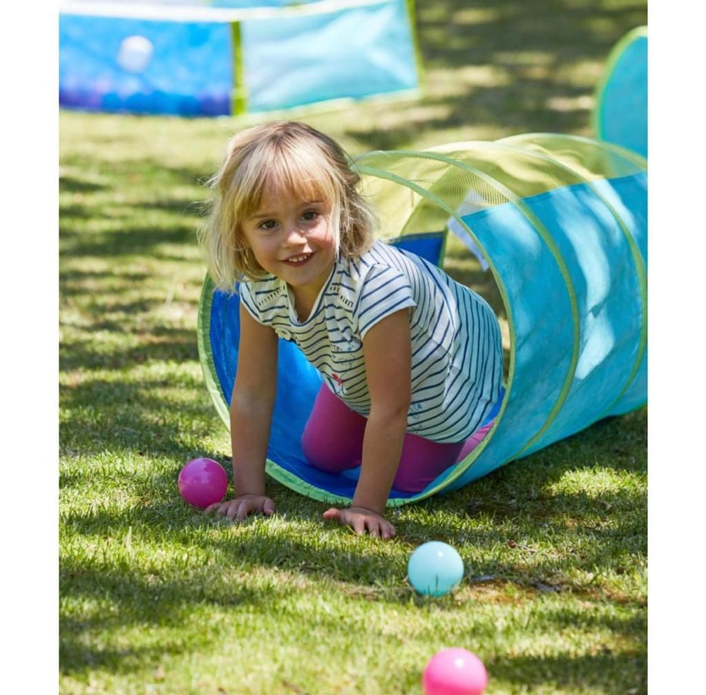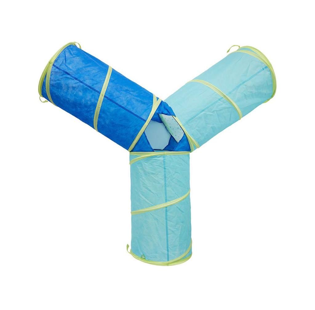 Features and benefits for Y tunnel3x 0.8m tunnels joined in a Y shapegreat for crawling and exploringfolds for easy storagehelps with the development of coordination skills, motor skills and strengthvelcro straps to attach the tunnel to our tentsdimensions: h40 x d40 x l120cmProduct InformationUse with this play tunnel on its own or attach it to one of our tents with the velcro straps to create secret entrances for your little one and their friends to explore.Great for encouraging active play, this soft tunnel will get your little one crawling, rolling and moving around, helping physical development and building confidence. Easy to pop up and fold away for storage, this play tunnel is ideal for indoor and outdoor fun.