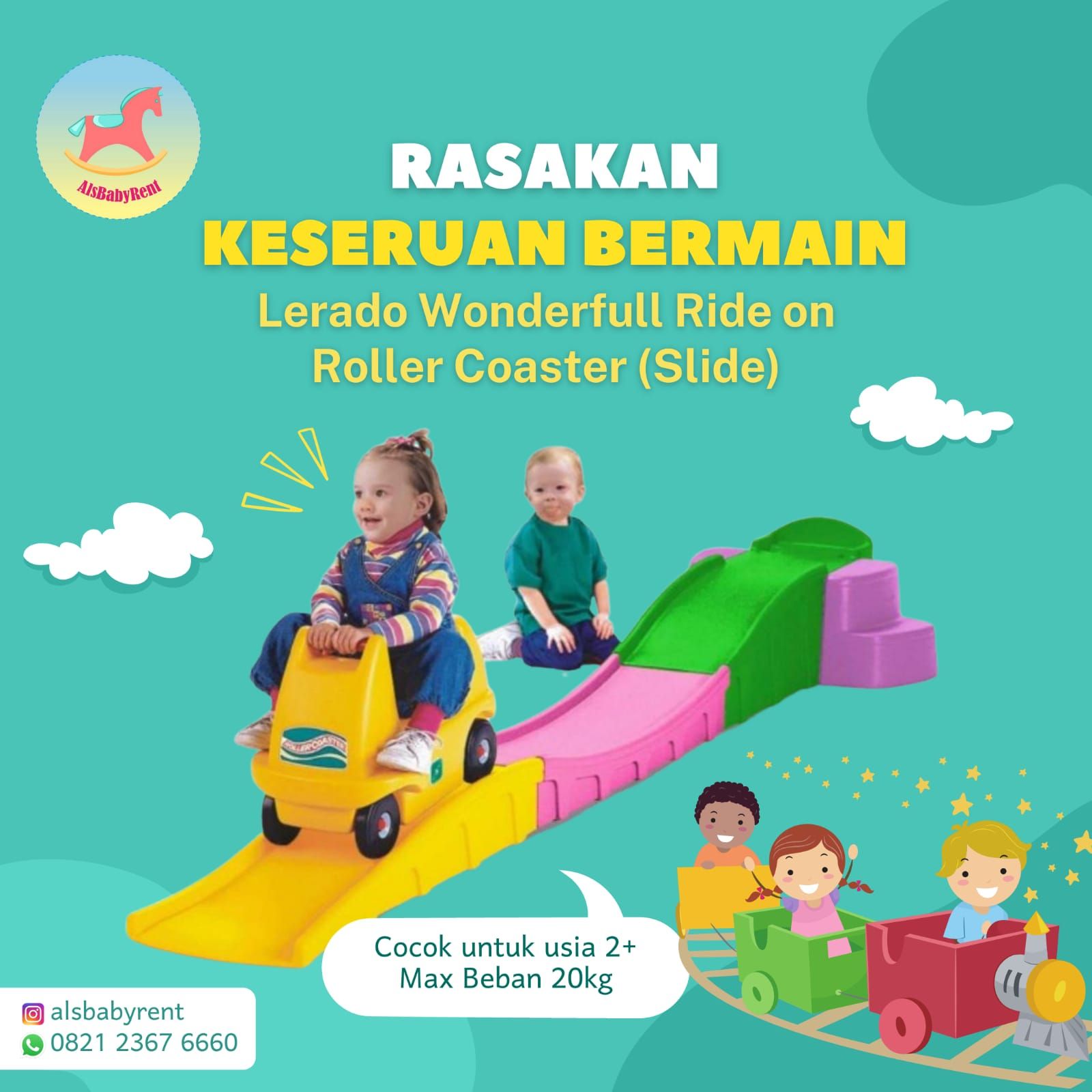 Lerado Wonderfull Ride on Roller Coaster mainan satu ini sangat unik sekali, yaitu 1 Mobil coaster yang bisa meluncur dengan aman, karna dilengkapi dengan punggung tinggi, pijakan kaki, pegangan, kontrol hambat pd roda sehingga anak2 aman saat meluncur.